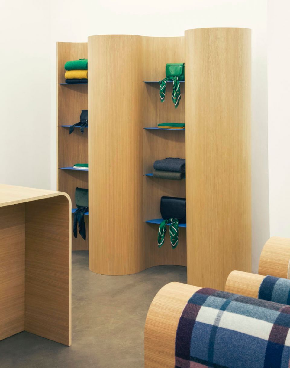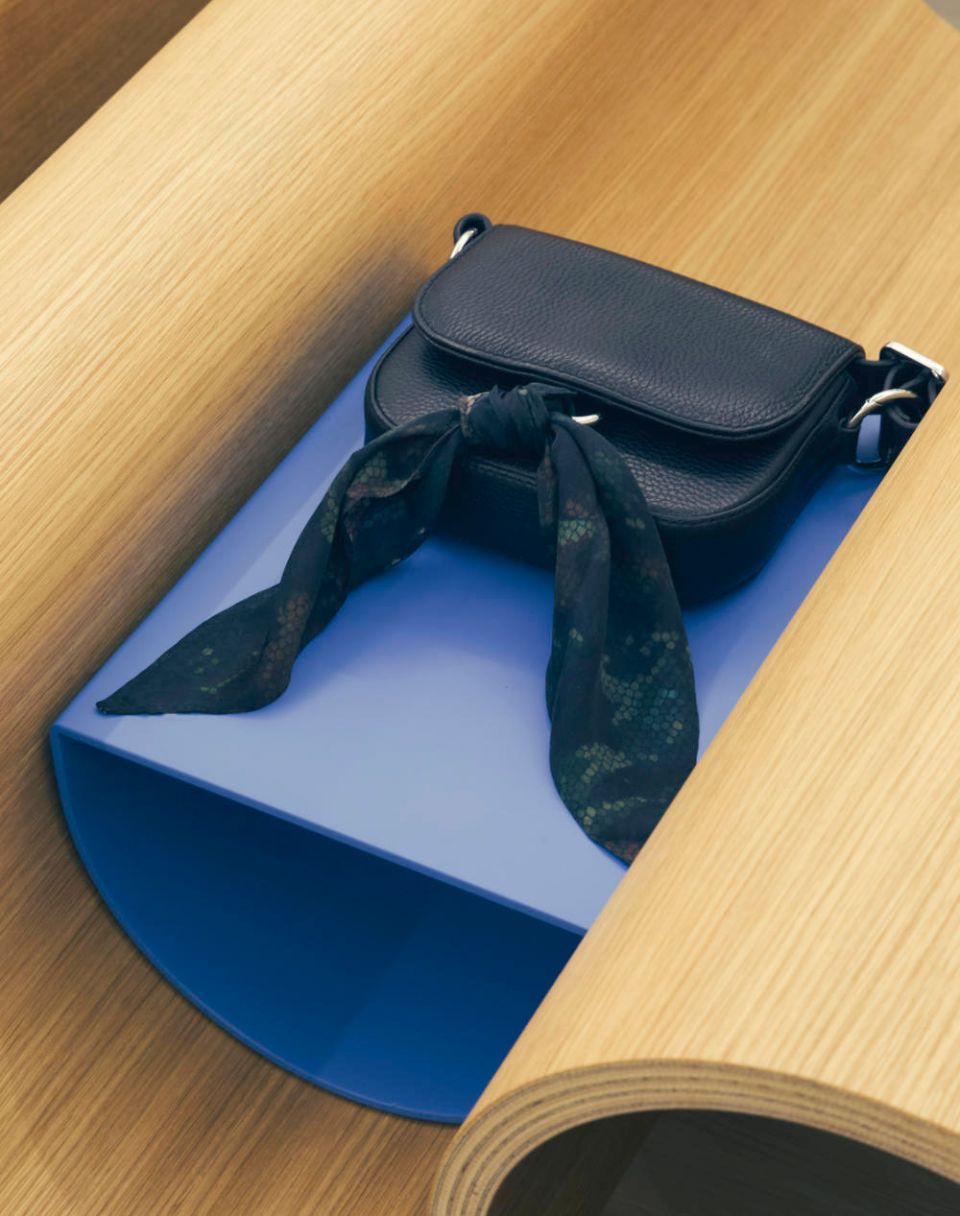 Mobilier sur mesure en placage chêne pour les Showrooms parisiens de la marque norvégienne Holzweiler.